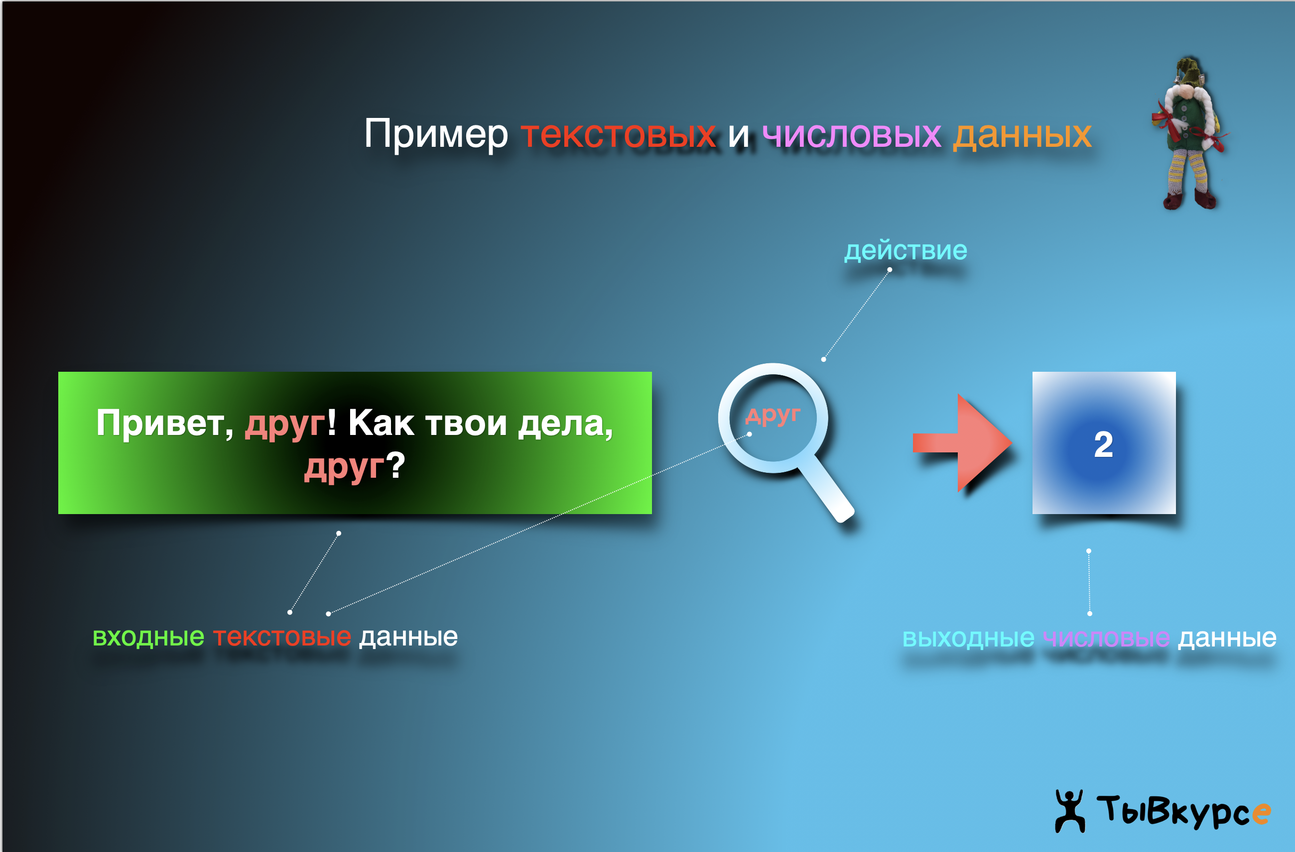 Затем ты узнаешь, как писать и запускать программу на языке Python. Ты познакомишься с переменной в языке программирования, входными и выходными данными, типами данных. |
