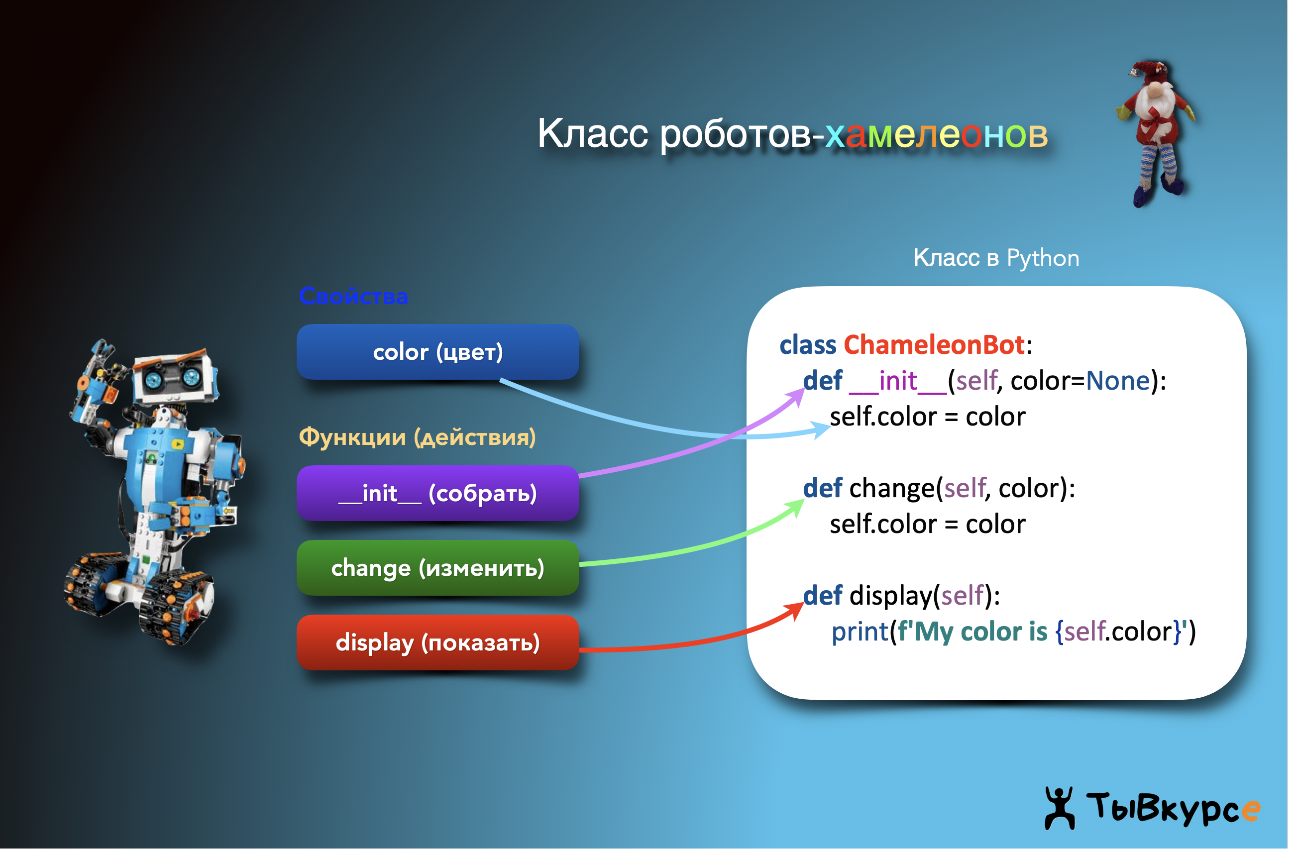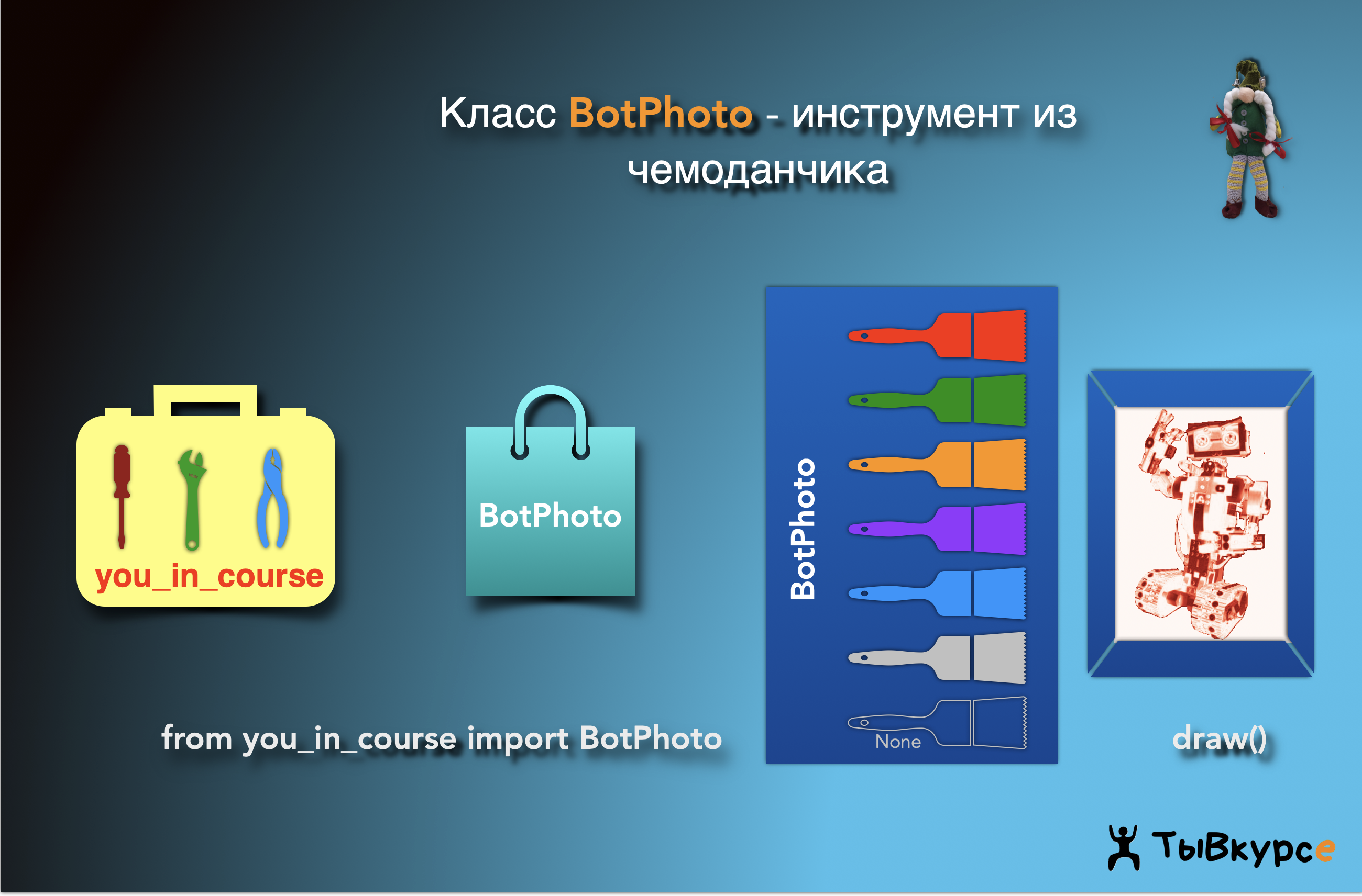 Научишься создавать собственные типы данных с помощью классов, которые позволят тебе собрать первого виртуального робота. Увидишь, как можно, используя инструменты из волшебного чемоданчика (пакеты и библиотеки) менять цвет фотографии виртуального робота и показывать ее на экране. |